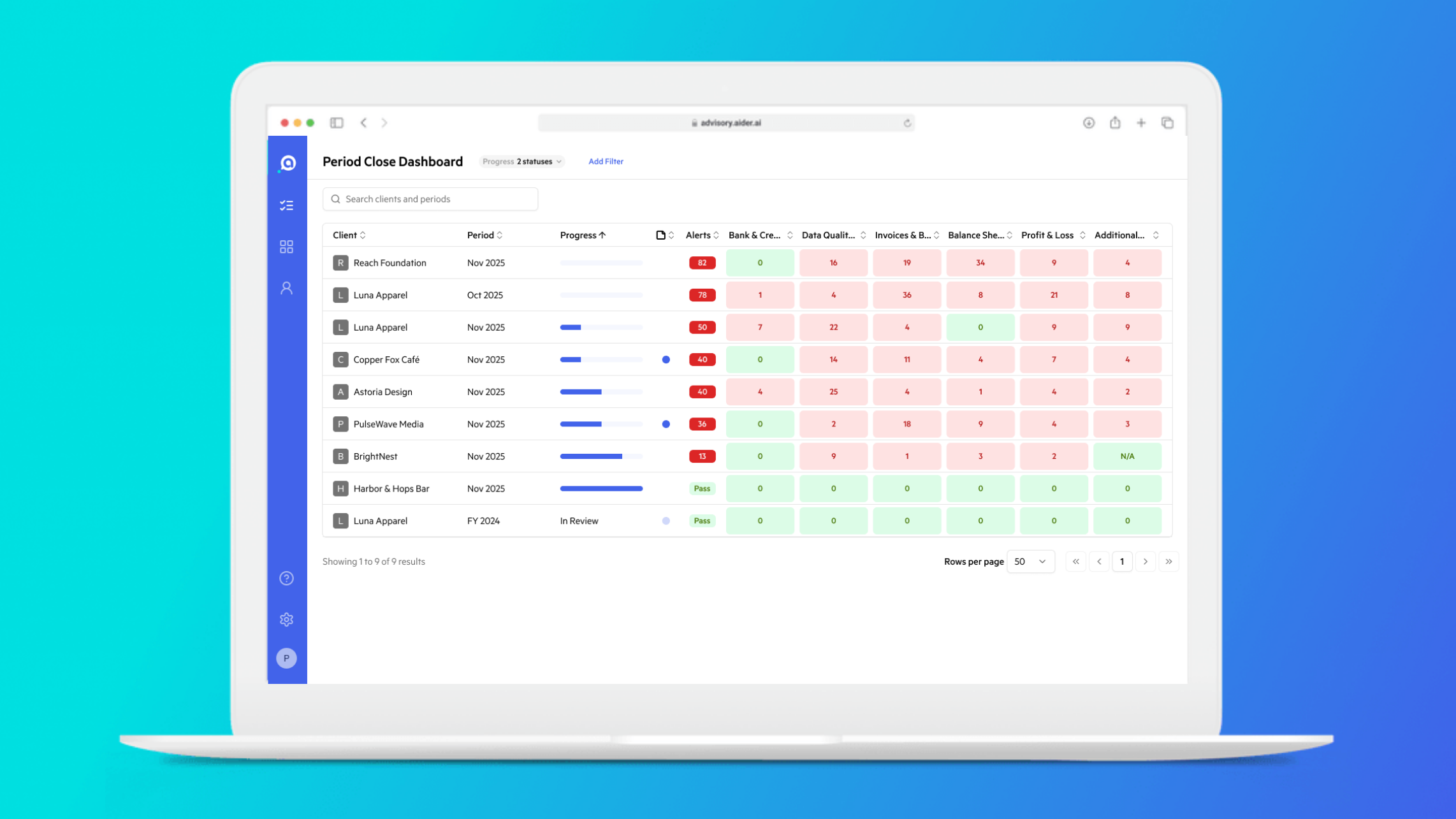 Aider has a completely rebuilt period close experience with a refreshed UI, more powerful customization, and tighter Karbon integration.